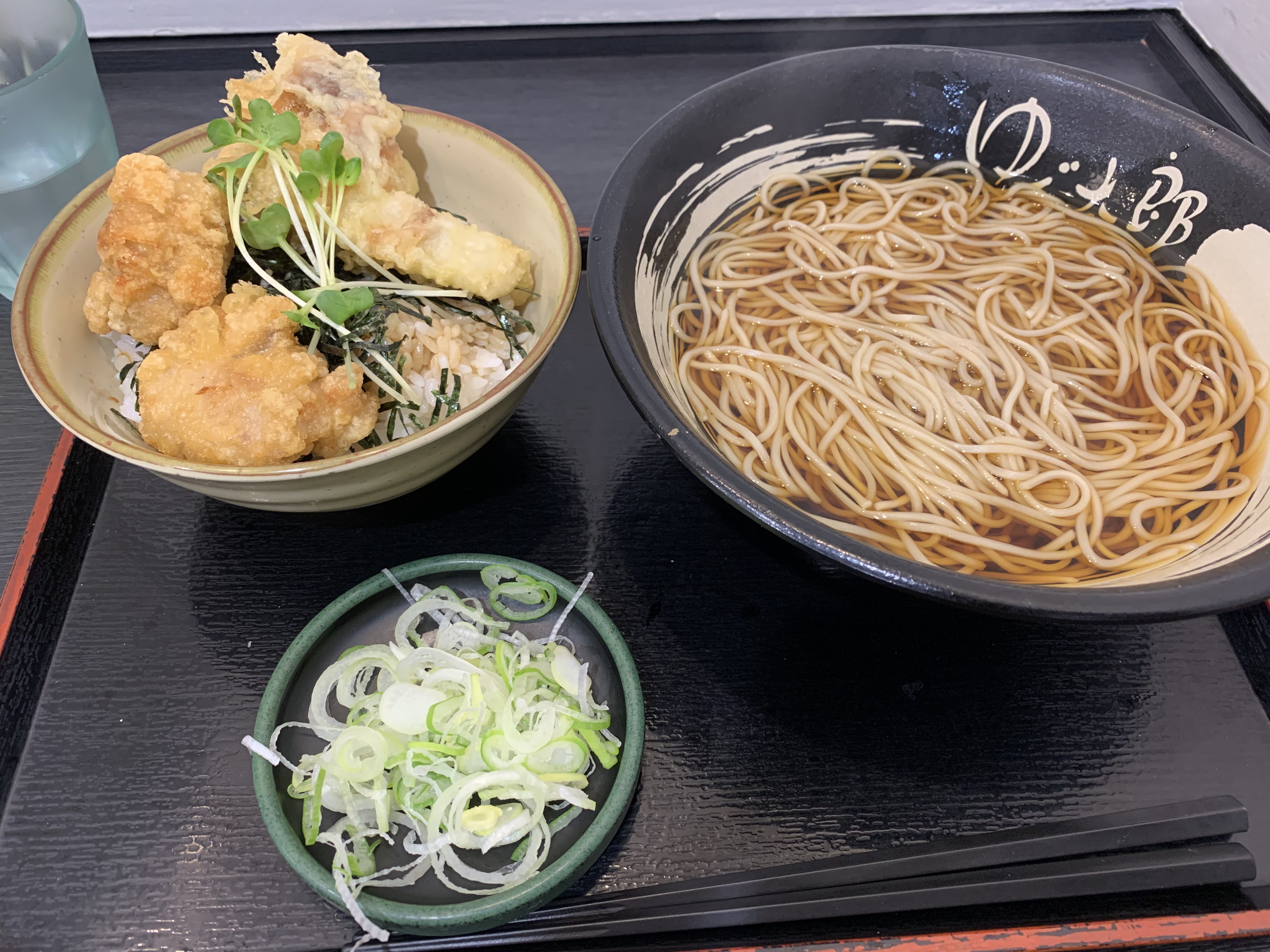 そばは、唐揚げ丼とのセットです。鶏天が美味しいので、鶏天も頼みたかったけど、我慢しました。天ぷらだけでなく、ご飯も食べたかったので。チェーン店で、安いけど美味しいんです。細めのそばに、汁がとても良い仕事してる。