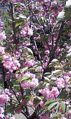 写真は学校で撮った八重桜です。葉桜になってますが…。
