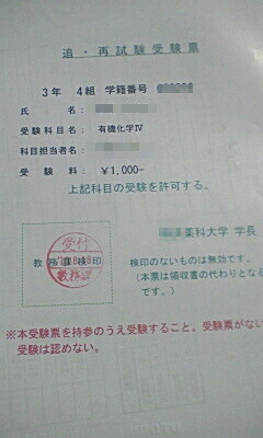 臨床栄養学のレポートも出してきました。写真は有機化学Ⅳの追試の領収書兼受験票です。26日にあるのでこっちも頑張りたいです。