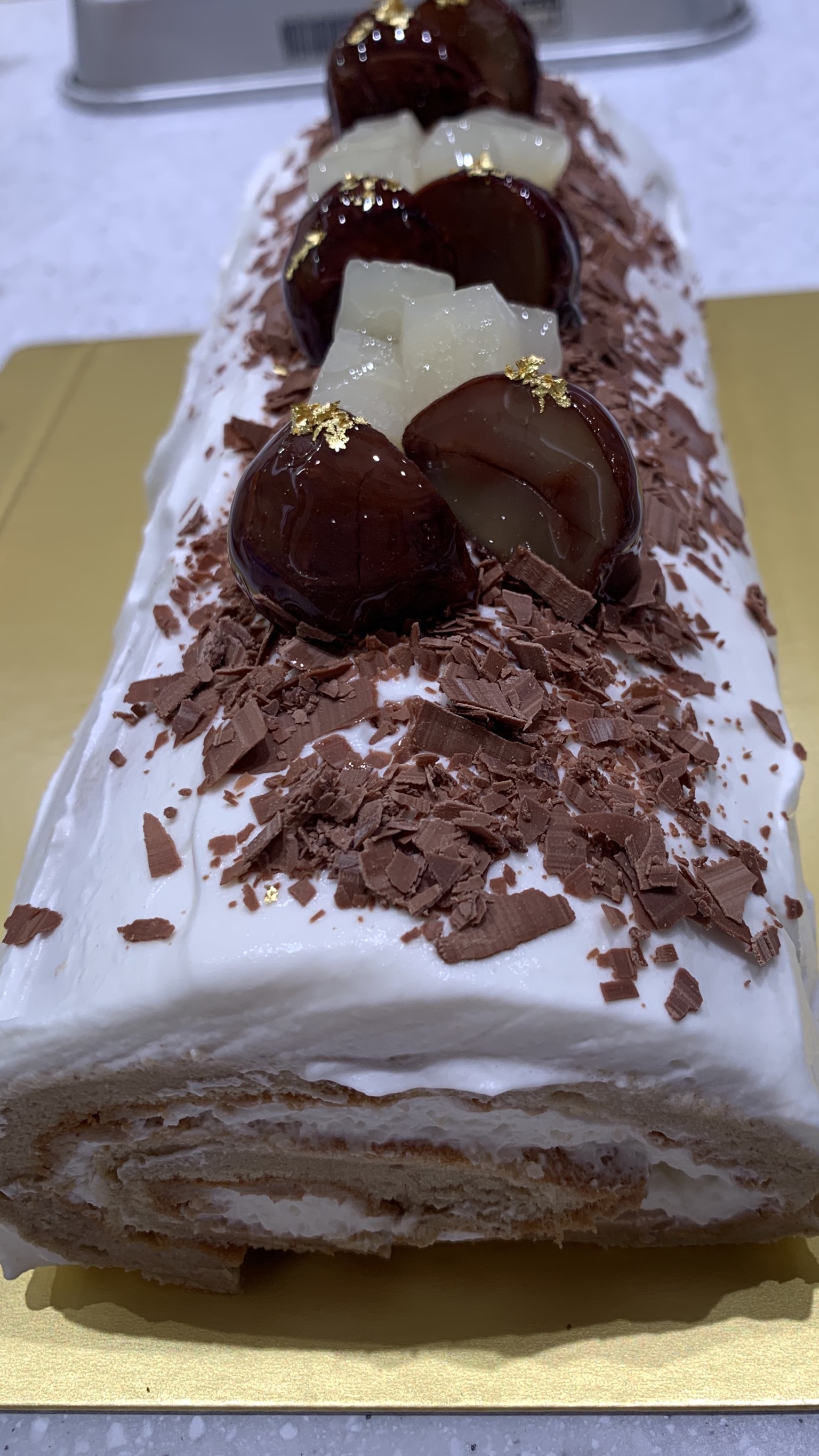 写真は昨日作った、マロン&洋梨のロールケーキ